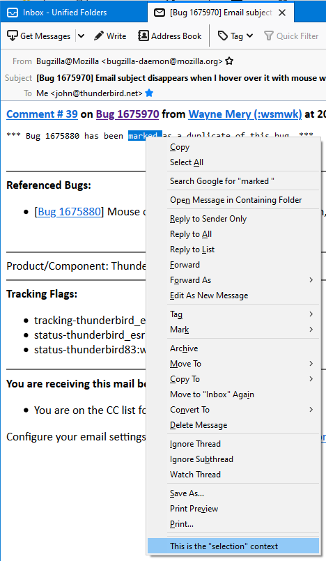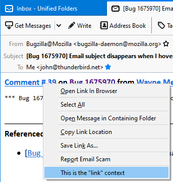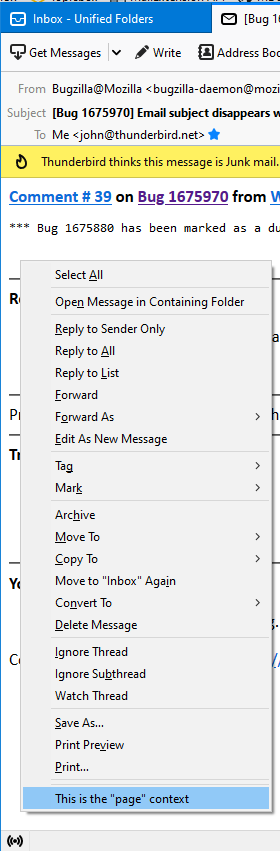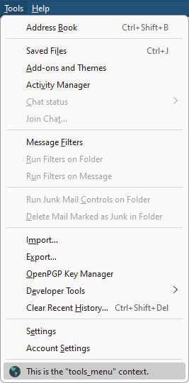 Thunderbird menus are accessible through the following context types:
